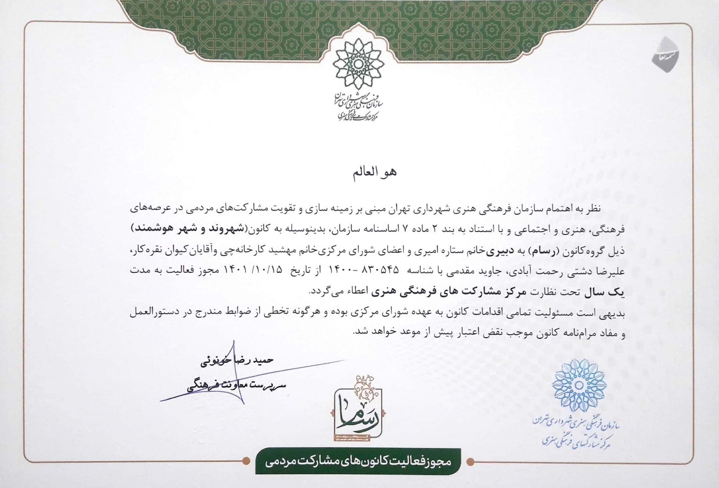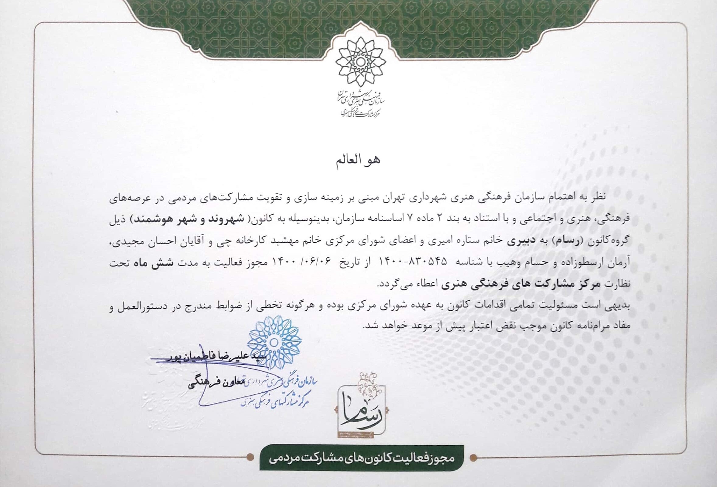مجموعه « شهروند و شهر هوشمند» یک مجموعه مردمی متشکل از متخصصین و علاقمندان به حوزه شهر هوشمند است که با کسب مجوز از مرکز مشارکت‌های مردمی سازمان فرهنگی هنری شهرداری تهران در سطح شهر تهران امکان فعالیت‌های فرهنگی-فناوری را دارد. این مجموعه علاوه بر مشارکت در رویدادهای مرتبط با سازمان فرهنگی هنری شهرداری تهران می‌تواند بطور مستقل با کلیه مجموعه های این سازمان و نیز مجموعه‌های فناور و شرکت های دانش بنیان مرتبط با شهر هوشمند و خدمات شهروندی همکاری و مشارکت داشته باشد.