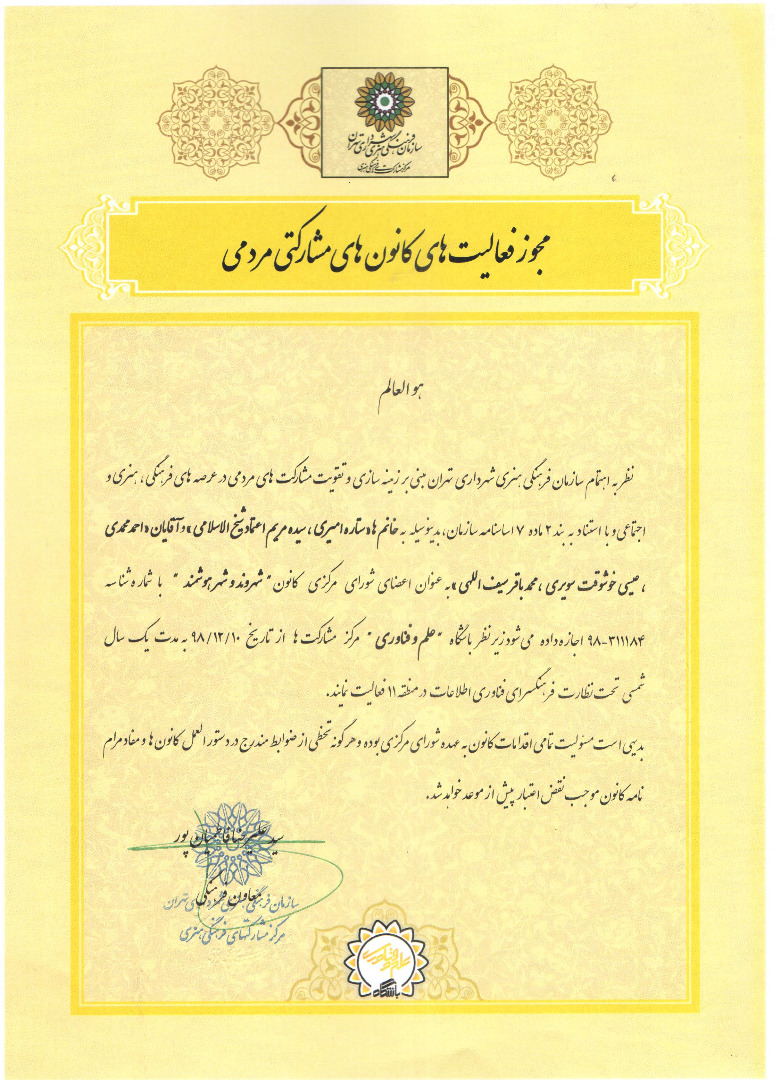 از آغاز فعالیت این مجموعه تا حال سرکار خانم دکتر «ستاره امیری» بعنوان عضو هیات موسس و دبیر اجرایی مجموعه «شهروند و شهر هوشمند» در هر 4 دوره منتخب شدند.