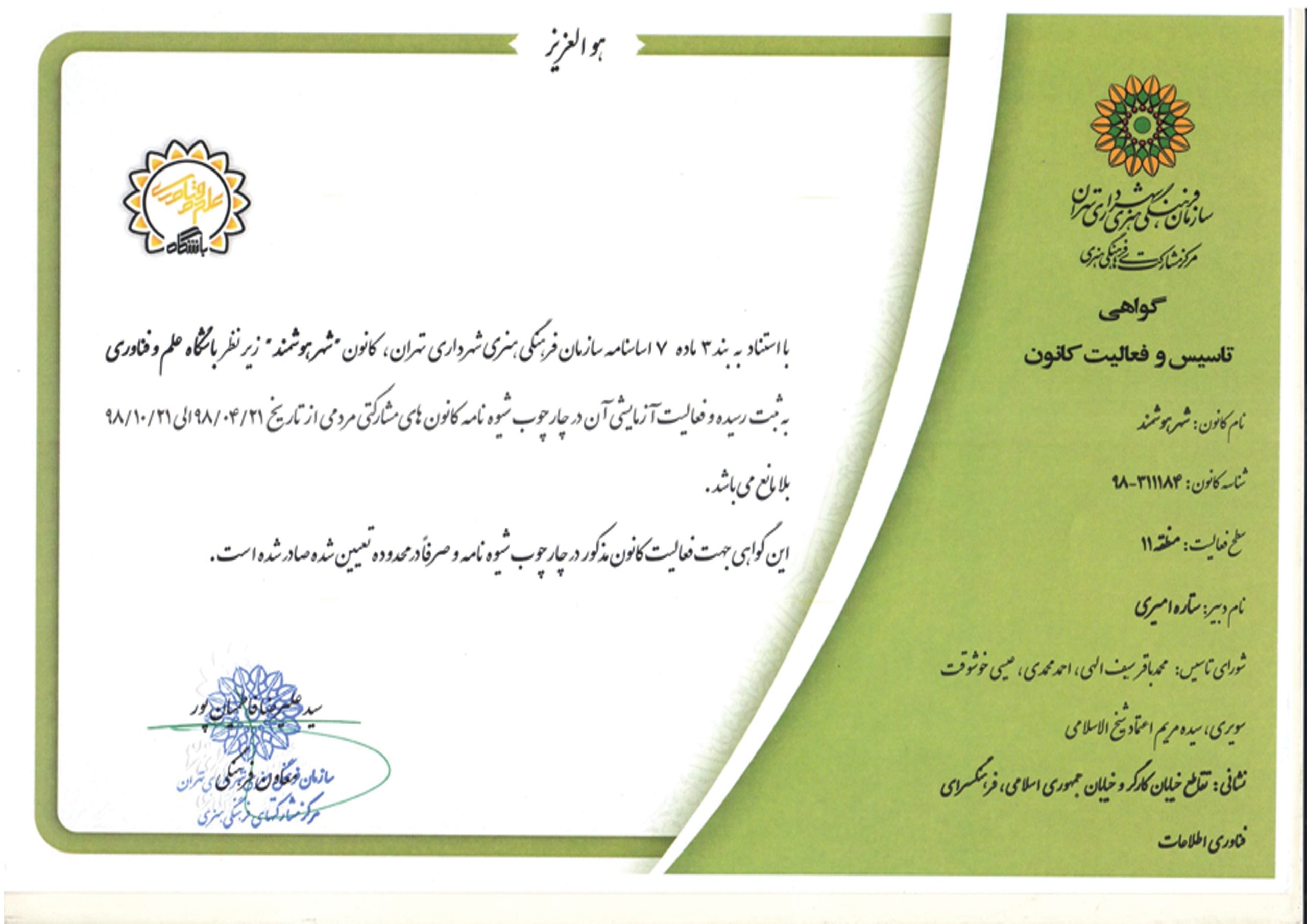 این مجموعه از شهریور ماه 1397 فعالیت‌های ترویجی خود را در زمینه شهر هوشمند با استقرار در فرهنگسرای فناوری اطلاعات سازمان فرهنگی هنری شهرداری تهران آغاز نمود و پس از تبدیل شدن این فرهنگسرا به موسسه رشد و شکوفایی جوان بعنوان مجموعه شهری در خود مرکز مشارکت های مردمی سازمان فرهنگی هنری شهرداری تهران ثبت شده و دامنه فعالیت آن به کل شهر تهران گسترش یافت.
